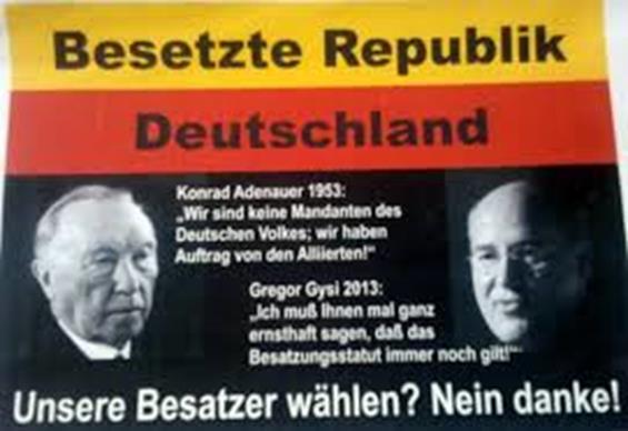 Deutschland ist immer noch eine US-Kolonie – die Deutschen werden aus den USA regiert (2014) Mehrere deutsche Politiker, Journalisten, Denker und selbst das deutsche Fernsehen sehen Deutchland seit 1945 bis heute (2014) als ein durch die USA besetztes Gebiet, die deutsche Regierung ist nur eine Marionettenregierung der USA und das deutsche Volk hat weder eine innen- noch außenpolitische Souveränität. Im Video treten auf: