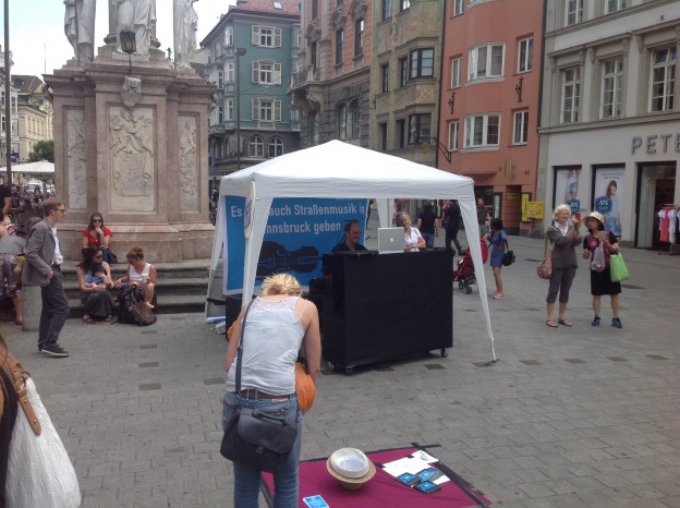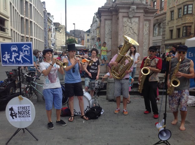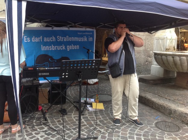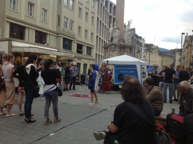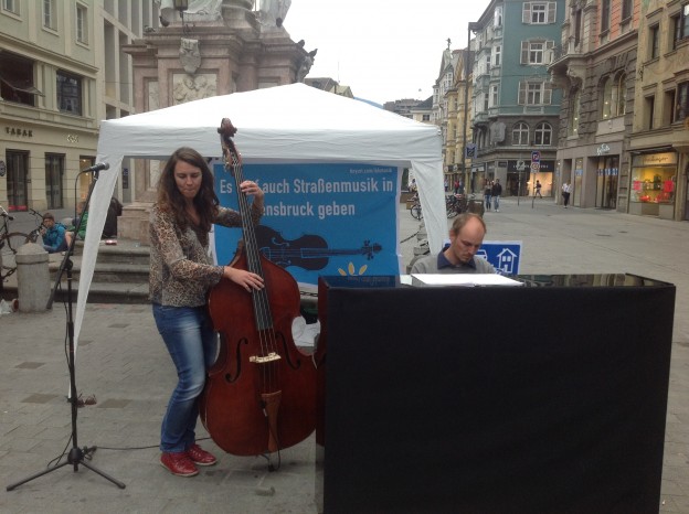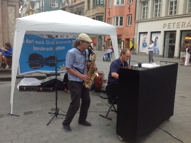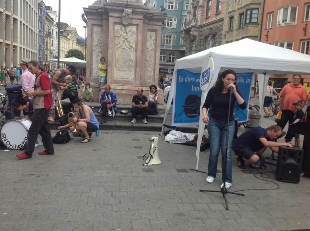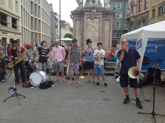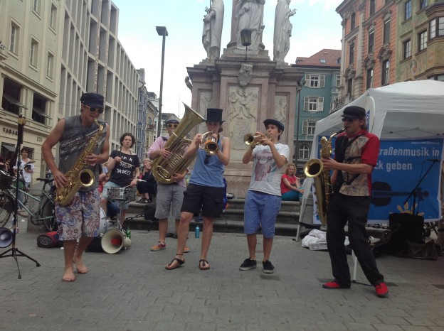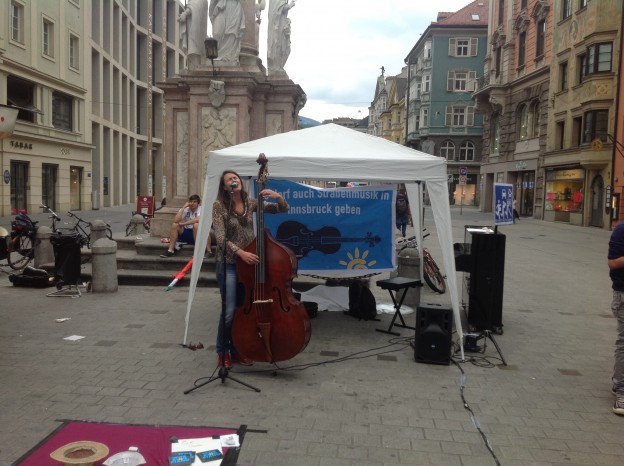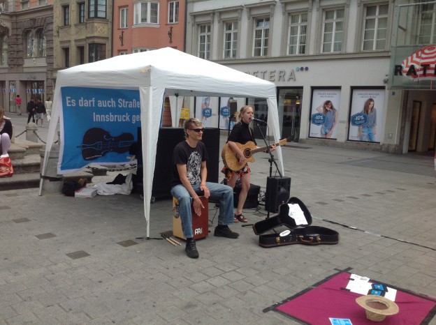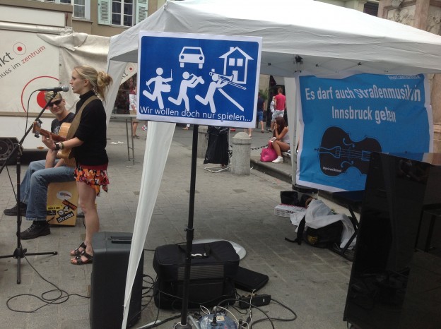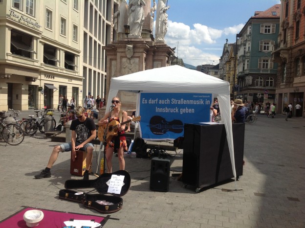 gestern in Innsbruck: musikalischer Aufstand gegen die unzumutbaren Regeln der Stadt Innsbruck für Straßenmusiker.