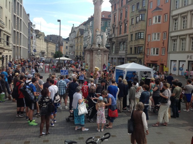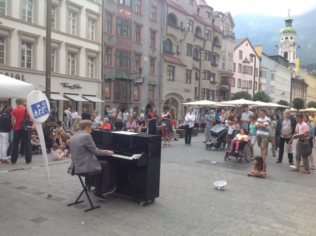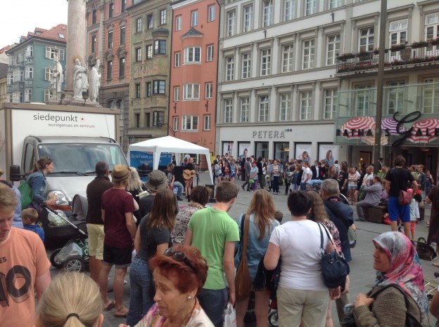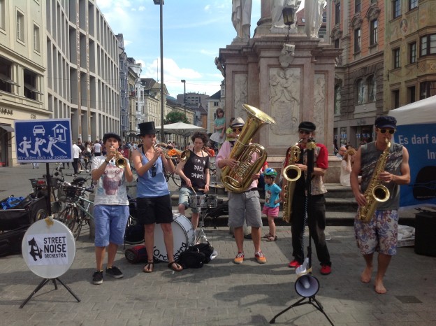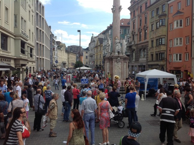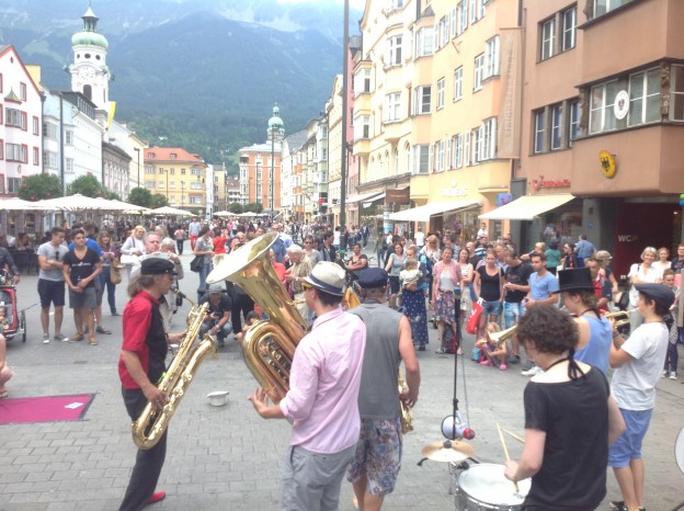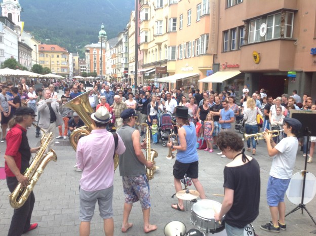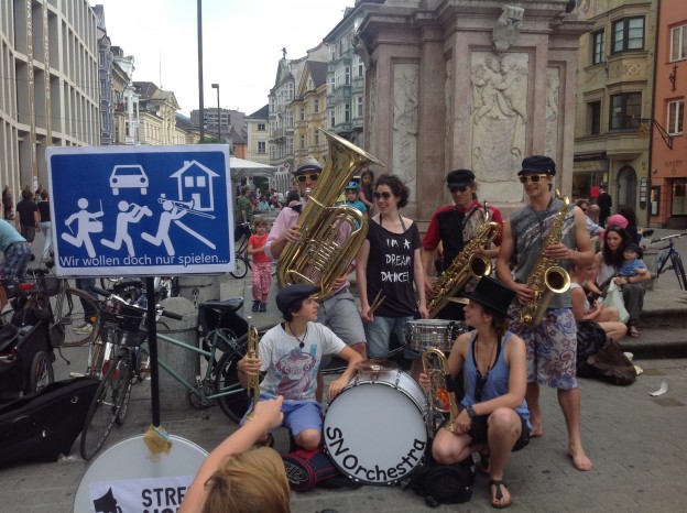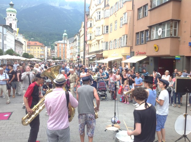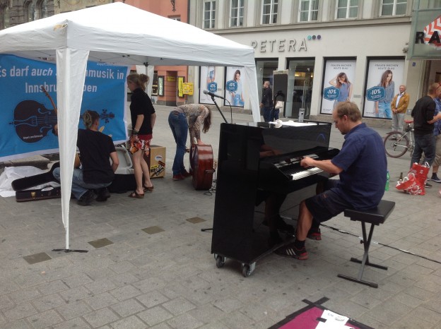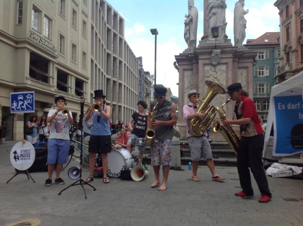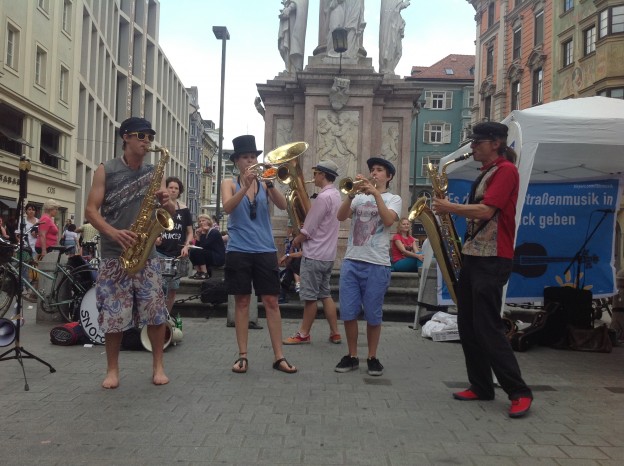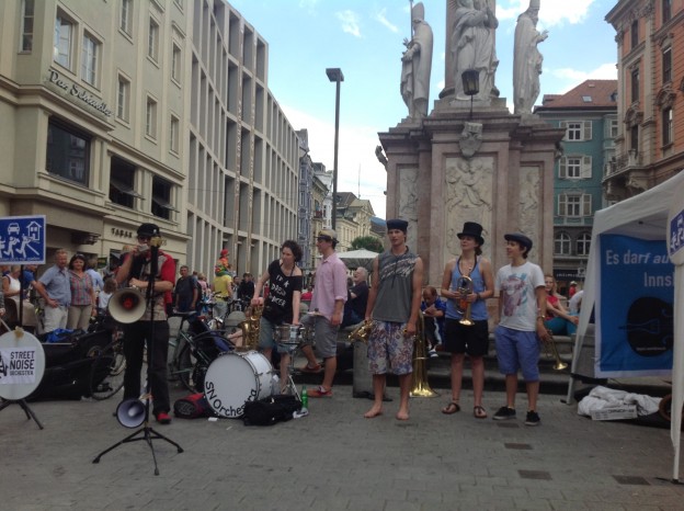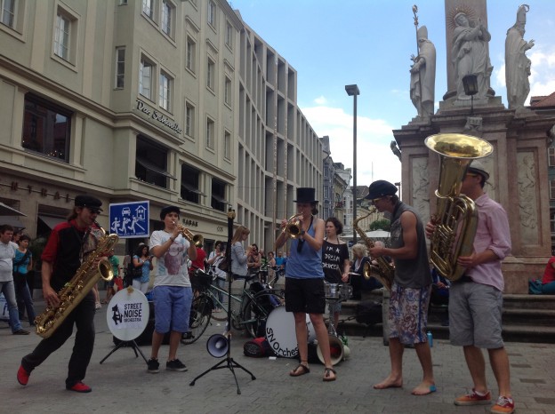 gestern in Innsbruck: musikalischer Aufstand gegen die unzumutbaren Regeln der Stadt Innsbruck für Straßenmusiker.
