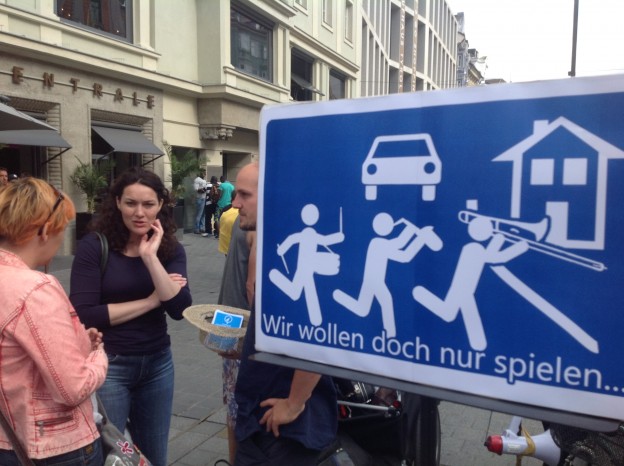 Erwan und Felix im Zusammenspiel für vernünftige Regeln für alle Straßenmusiker.