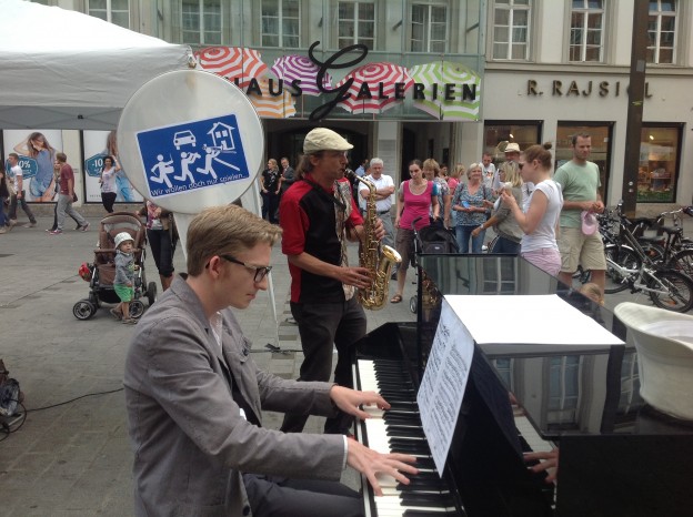 Straßenmusik verbindet, erhellt, ertönt und ergänzt das Stadtbild.