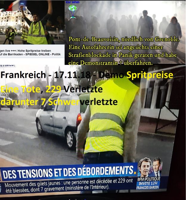 Die Franzosen sind wütend – 17.11.18 Demo Spritpreise – 229 Verletzte, davon 7 Schwerverletzte, eine Tote