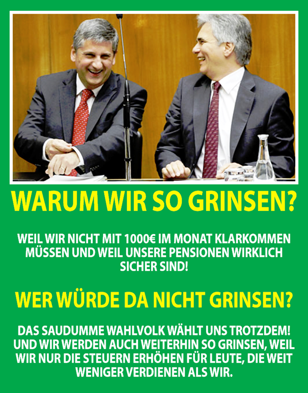 das mit der Hypo Alpe Adria Umverteilung & Sozialisierung haben wir jetzt dem Volk über/mit die Medien verkauft, der Raiffeisen passt es sehr, sehr gut, auch den anderen, lass uns weiter herum Theatern und so tun, ..“ …