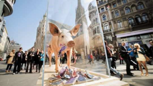 „Die Geldsau“ © Performancekünstler Nikolaus und Barbara Eberstaller in Wien