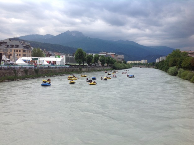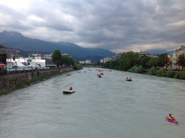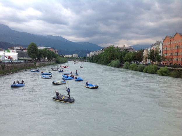 heute fand in Innsbruck auf dem Inn, eine Demonstration gegen die Kraftwerkspläne der TIWAG bzw. der ÖVP statt. Es beteiligten sich etwas über 80 Raftingboote samt Guides die um den Verlust ihrer Arbeitsplätze auf den Inn demonstrierten. Es geht um über 600 touristische Arbeitsplätze die aufgrund von verfehlter ÖVP-TIWAG-Energiewirtschaft auf dem Spiel stehen und um unseren TOURISMUS.