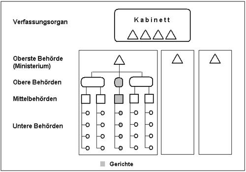 Bundessozialgericht jedoch nicht. Im heutigen Staatsaufbau sind organisatorisch somit nicht drei Säulen, sondern lediglich zwei – mit den Gerichten als in die Exekutive inkorporierten Fremdkörpern der Judikative – zu unterscheiden (Abbildung 3).