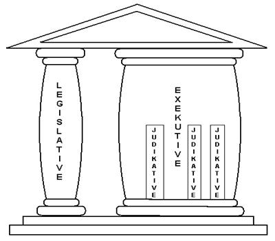 Diesem Grundprinzip entsprechend erfolgt die Aufteilung der Staatsgewalt in die drei Staatsfunktionen, die sich gegenseitig kontrollieren sollen. Das setzt aber voraus, dass für die drei Funktionen jeweils eigene Organe bestehen und diese nur jeweils in einer Funktion tätig sind.