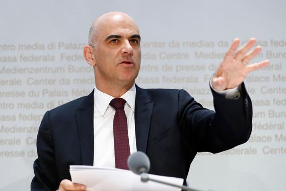 Bundespräsident Alain Berset erläutert die Position des Bundesrats zu den Versicherungsdetektiven vor den Medien. (Bild: Peter Klaunzer / Keystone)